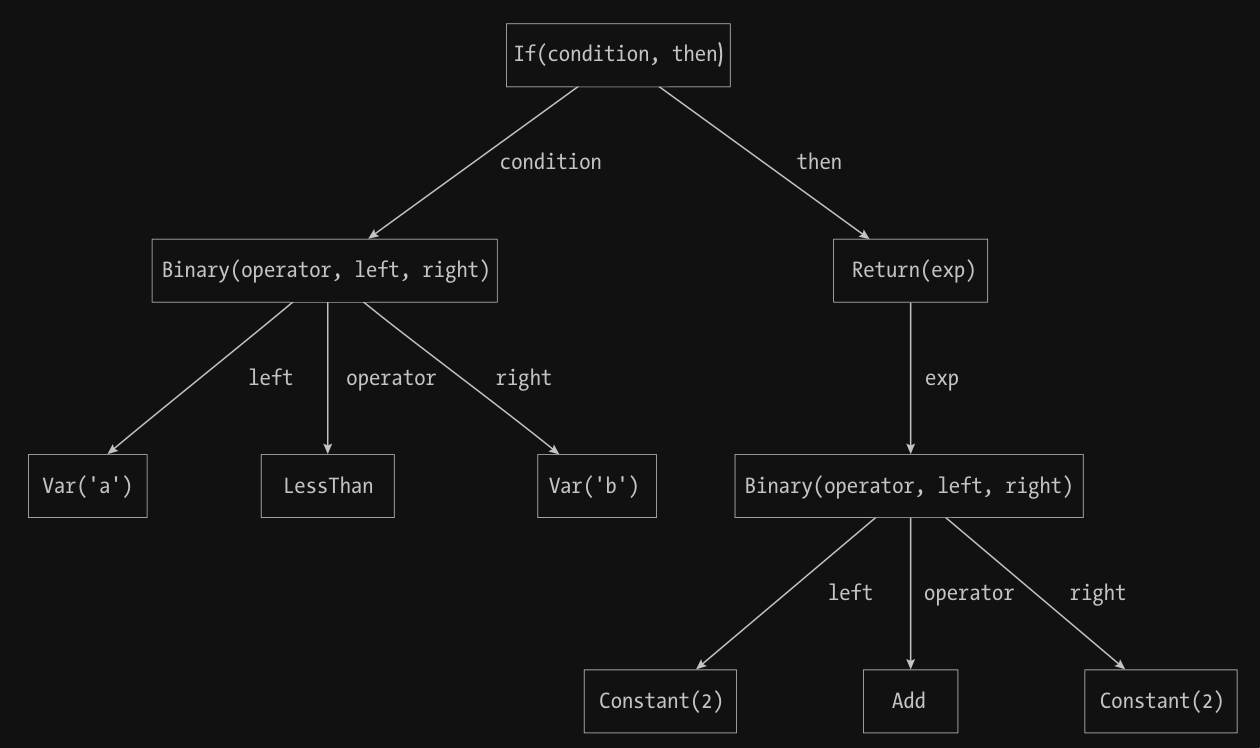 上述 ASDL 语句只定义了每个结点所包含的信息,我们还需要一套从